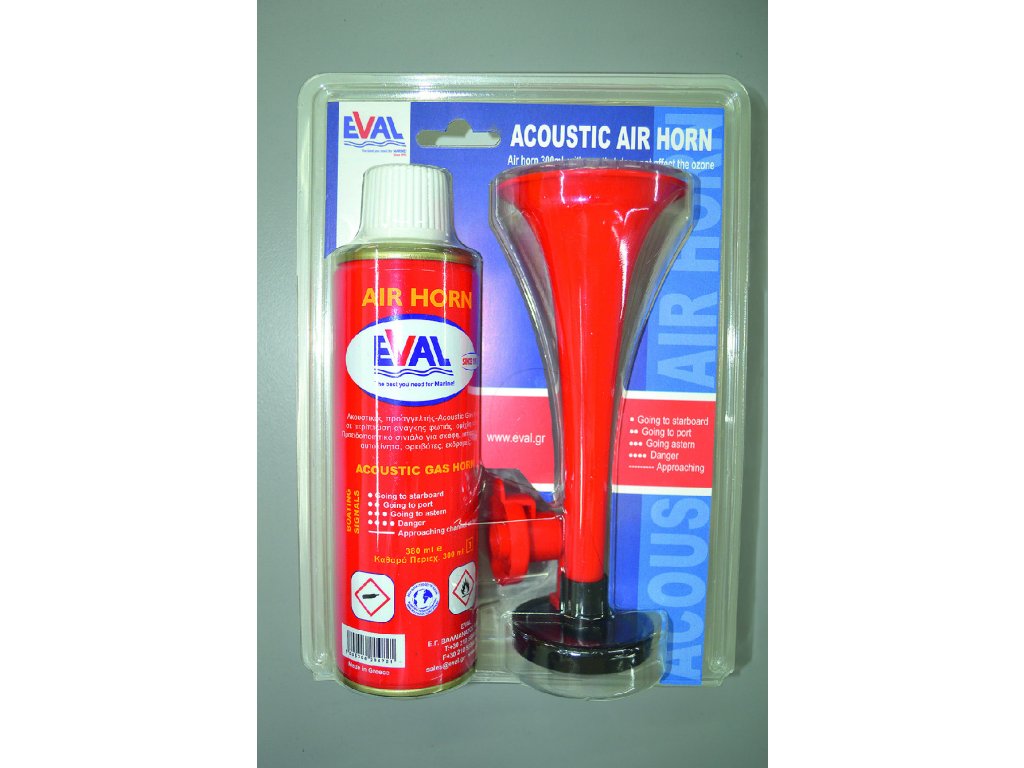 Akustická plynová houkačka EVAL AIR HORN poskytuje silný a jasně slyšitelný zvuk, který je vhodný pro signalizaci na vodě, v přístavech nebo při sportovních a bezpečnostních akcích. Díky jednoduchému použití je efektivním nouzovým signálním prostředkem, který splňuje bezpečnostní požadavky pro lodě a rekreační plavidla.